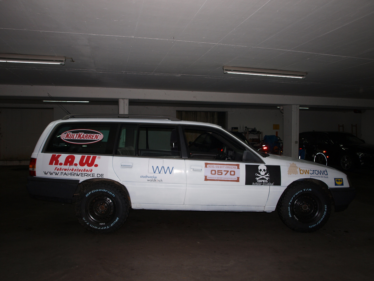 So, wir kommen gerade von der Versteigerung der RallyeAutos. Unser treuer omega hat unglaubliche 1100 Euro gebracht. Und das als Benziner und ausgeschnittenen Radlaeufen