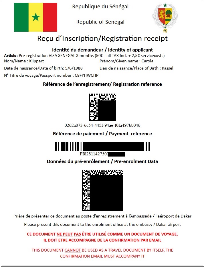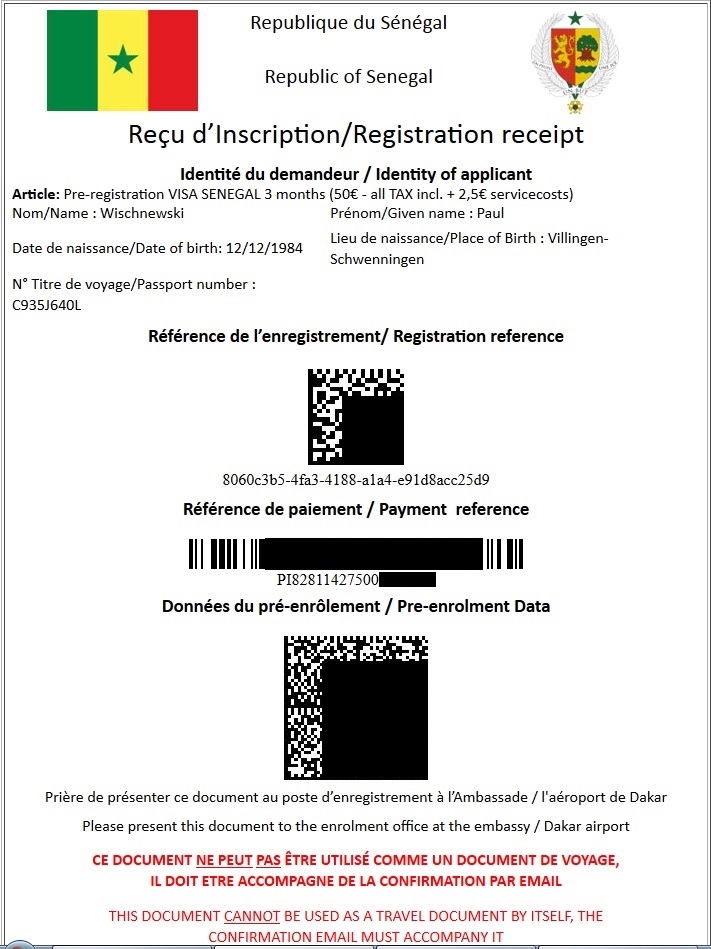 Die Online-Registrierung für unser Senegal-Visum ist auch abgeschlossen!
