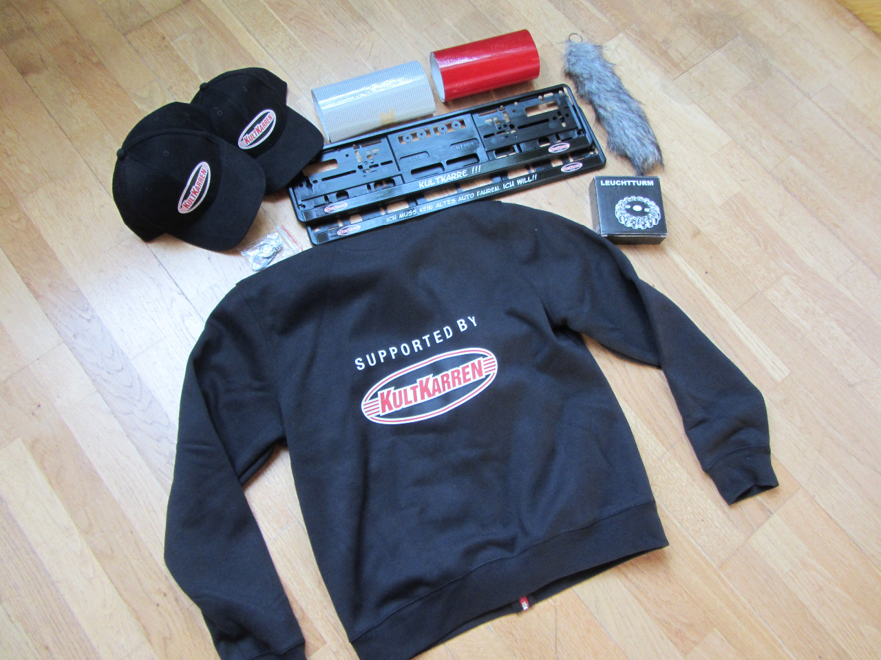Heute kam noch ein Teile-Paket vom Kultkarren Shop. Auf dem Bild ist leider nicht alles zu sehen. Der zweite Hoodie hat nicht mehr aufs Bild gepasst und die Steinschlagschutzfolie ist schon verarbeitet.